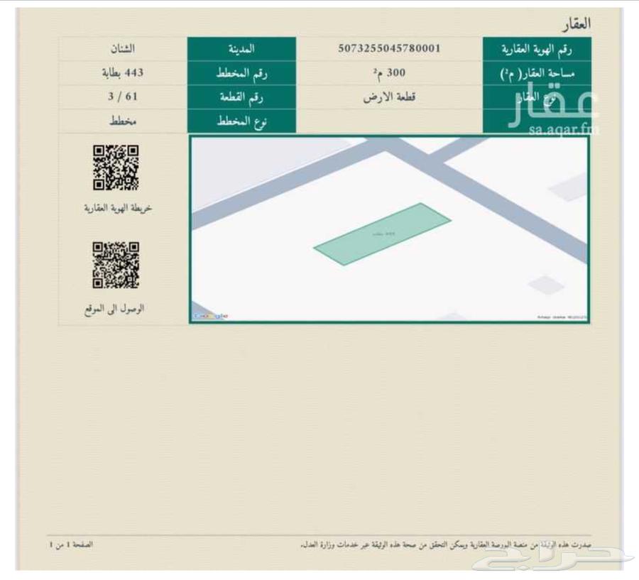 فرصة مميزة للاستثمار 🚩المساحة: 300 م² 🚩الواجهة : شمالية 🚩الشارع : 20 🔷الموقع الشنان ( طابة ) حائل ✅ 🔷صك إلكتروني نسبة الملكية 100٪ ✅ 🔷إفراغ فوري خلال ساعه يتم الافراغ ✅ 🔷مخطط معتمد من أمانة حائل ✅ 🔷طبيعة الارض مستويه ✅ 🔷مخطط سكني ✅ 📌الحد 32000 —————————————————- السيادة للعقارات متوفرة لدينا عروض اخرى في كافة مناطق المملكة ----- نأمل مطابقة الموقع على الخريطة مع الموقع حسب الصك الضمانات و مدتها: لايوجد