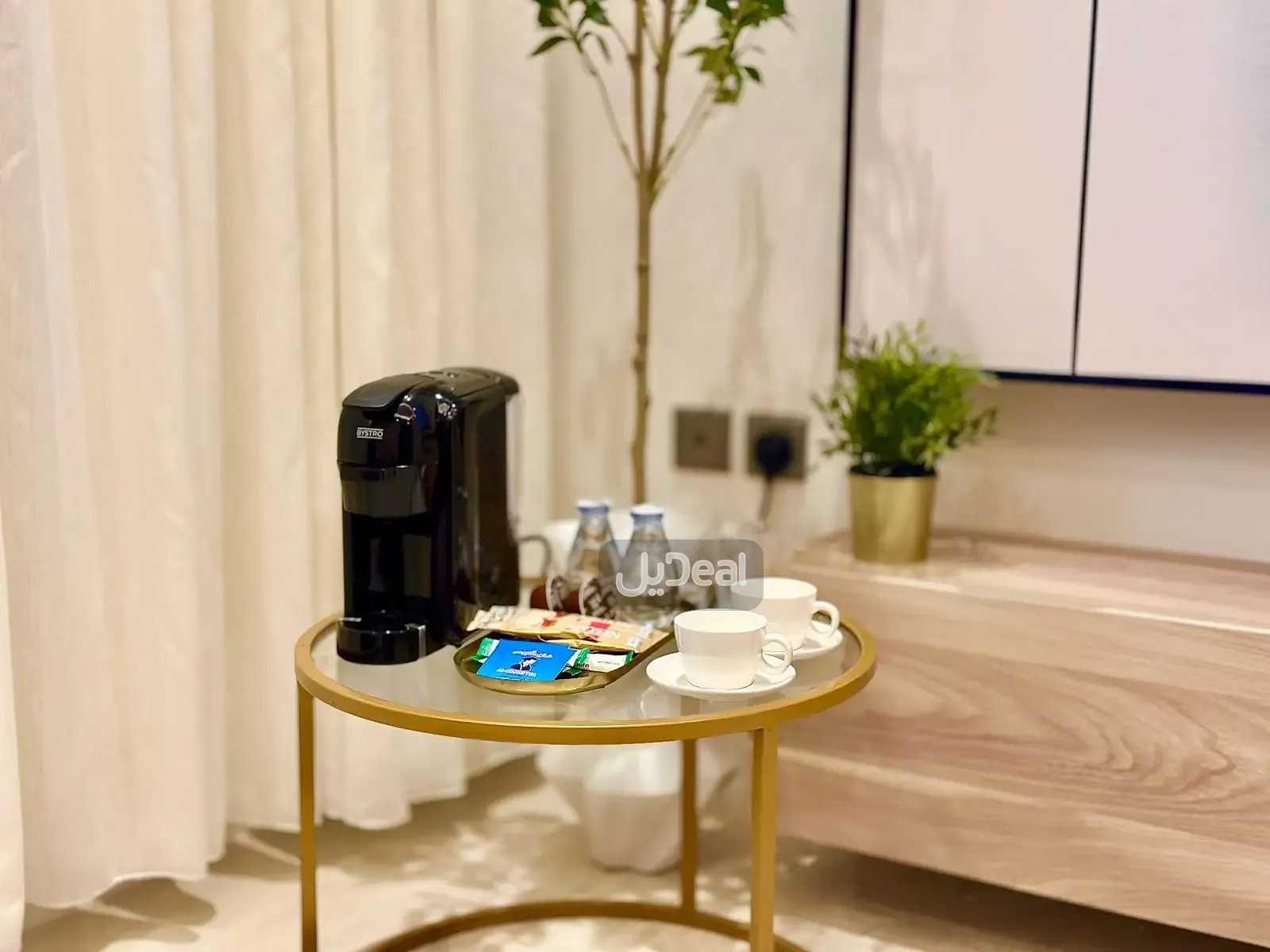 • ☕ ركن قهوة مجهز (ماكينة قهوة + ميكروويف + كافة المستلزمات)