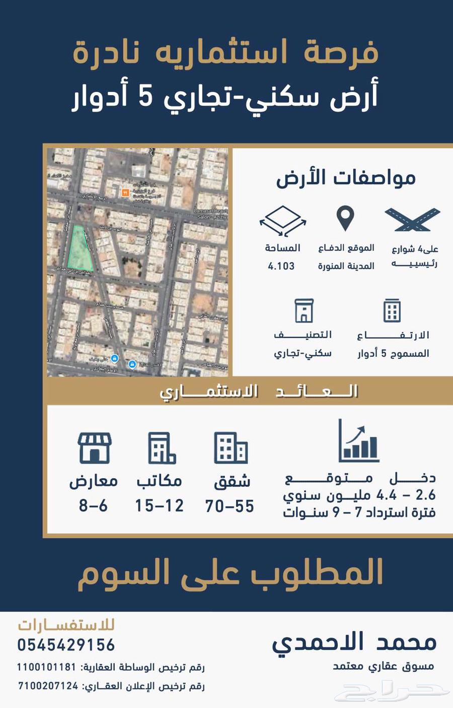 للبيع أرض سكنية تجارية - حي الدفاع بالمدينة المنورة