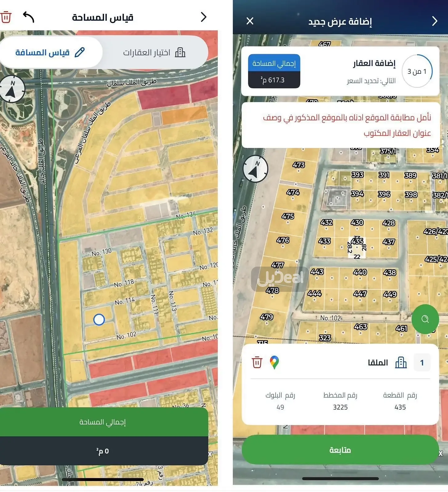 نأمل مطابقة الموقع على الخريطة مع الموقع حسب الصك: