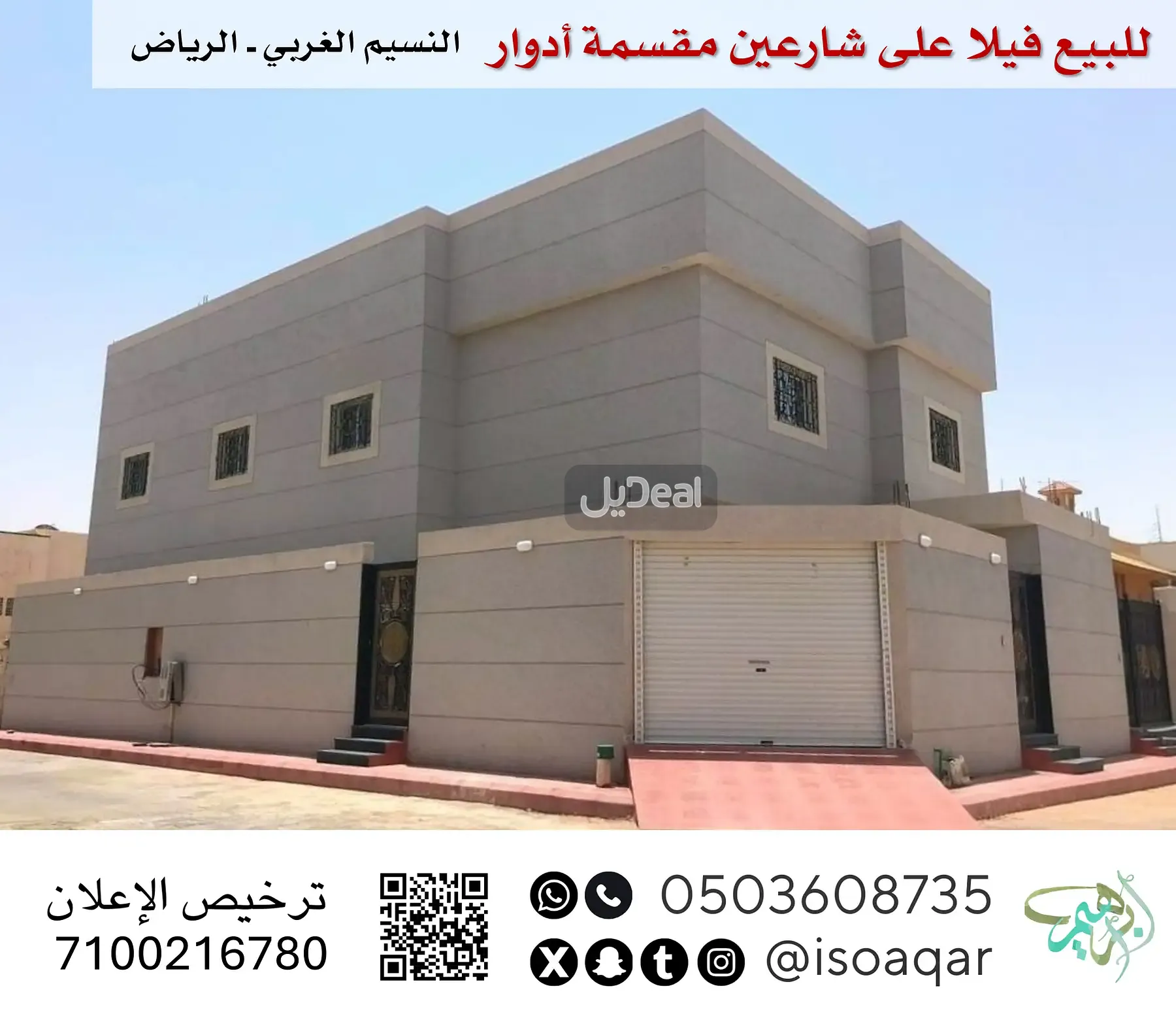 للبيع فيلا على شارعين مقسمة أدوار - حي النسيم الغربي بالرياض