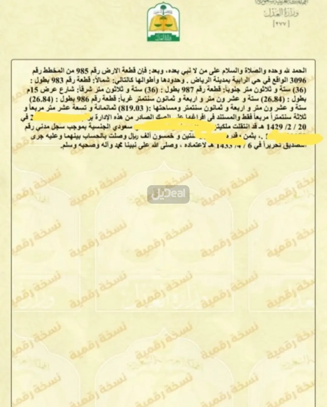 نأمل مطابقة الموقع على الخريطة مع الموقع حسب الصك: