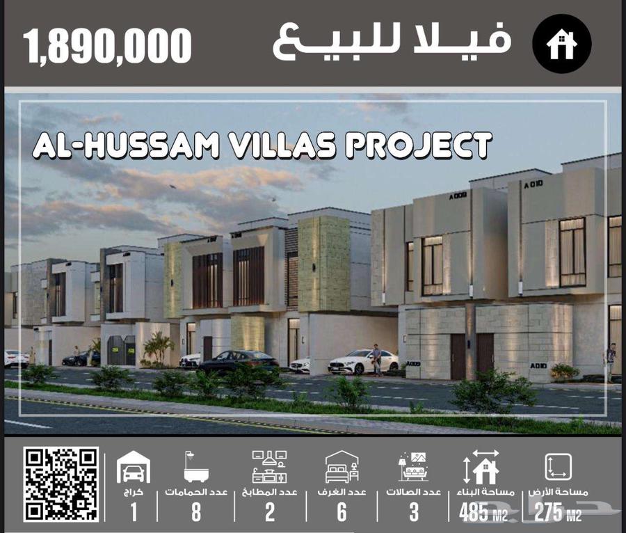 حي الحسام: يقع المشروع في موقع استراتيجي يتميز بسهولة الوصول إليه من جميع الاتجاهات قريب من الطرق الرئيسية والمرافق الحيوية مما يجعله الخيار المثالي للسكن . 1. حي راق جداً وسكانه الاغلب من منسوبي أرامكو السعودية. 2. توفر الخدمات في الحي وحوله. 3.موقع قريب من الحديقة، الممشى، المسجد، طاقه بارك 4. هدوء وراحة بعيدًا عن الزحام وضجيج المركبات. 5- قريب من بوابه ارامكو. 6. قريب من الكورنيش والمجمعات والطرق السريعة والمدن الأخرى 7. سهولة الوصول للحي بفضل المداخل والطرق الجديدة. 8. قريبة من ملعب ارامكوا الجديد 9. قريب من مجمع أفينيو 10. قريب من جامعة الدمام 11. قريب من كورنيش الدمام والخبر المساحة: الأرض 265 متر²، البناء 485 متر².