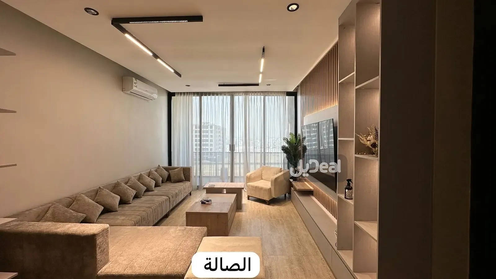 تتكون مجلس مؤثث ومقلط ومستودع وصالة مع بلكونة مؤثثة ومطبخ راكب