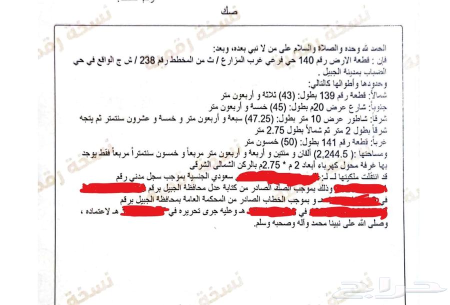 للبيع قطعة ارض سكنية تجارية في مدينة الجبيل حي الضباب المساحة 2244 متر على شارع جنوبي بعرض 20 متر وبطول 45 متر تبعد عن كورنيش الجبيل 2 كيلو متر حي قائم ومتكامل الخدمات الصرف المياة الكهرباء سعر الأرض مميز أقل من سعر السوق