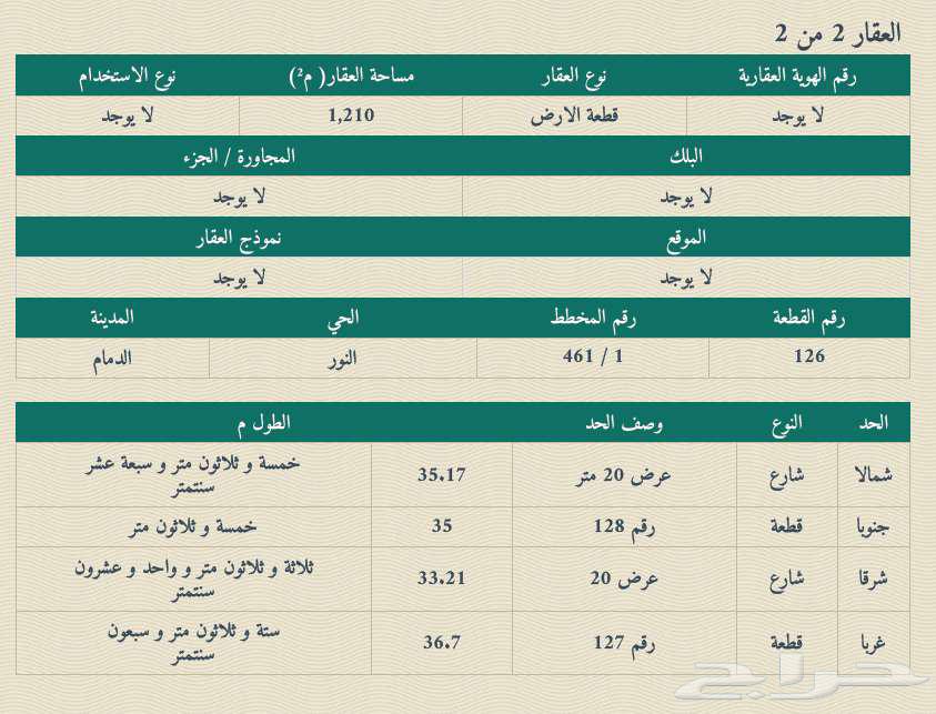 أرض سكنية رقم 126 - 128 في مخطط رقم 1 / 461 حي النور الدمام