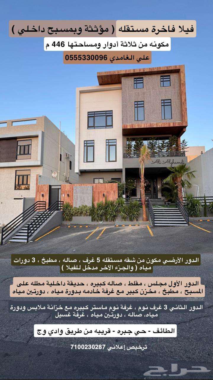 فيلا تمليك فاخرة مستقلة ( مؤثثة وبمسبح داخلي ) بالإضافة لشقه مؤجره