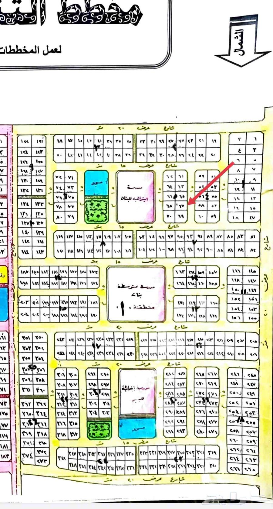 الزاوية موجودة جنبها رقم 69 مساحة 620 متر شارع 15شمال15 غرب مطلوب 2000 ريال للمتر