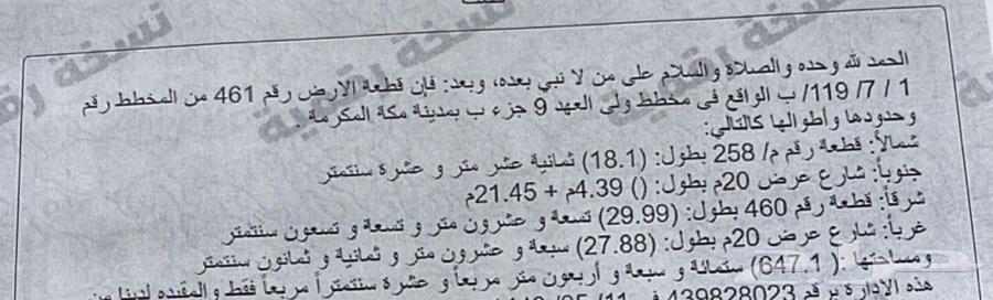 للبيع ارض سكنيه مخطط ولي العهد رقم 9 جزء ب المربع الاول / خلف شارع 52 وقرب الدايري الخامس مستويه مساحتها 647 متر على شارعين 20/20 ( امكانية فرزها أرضين ويجب التأكد من مكتب هندسي )