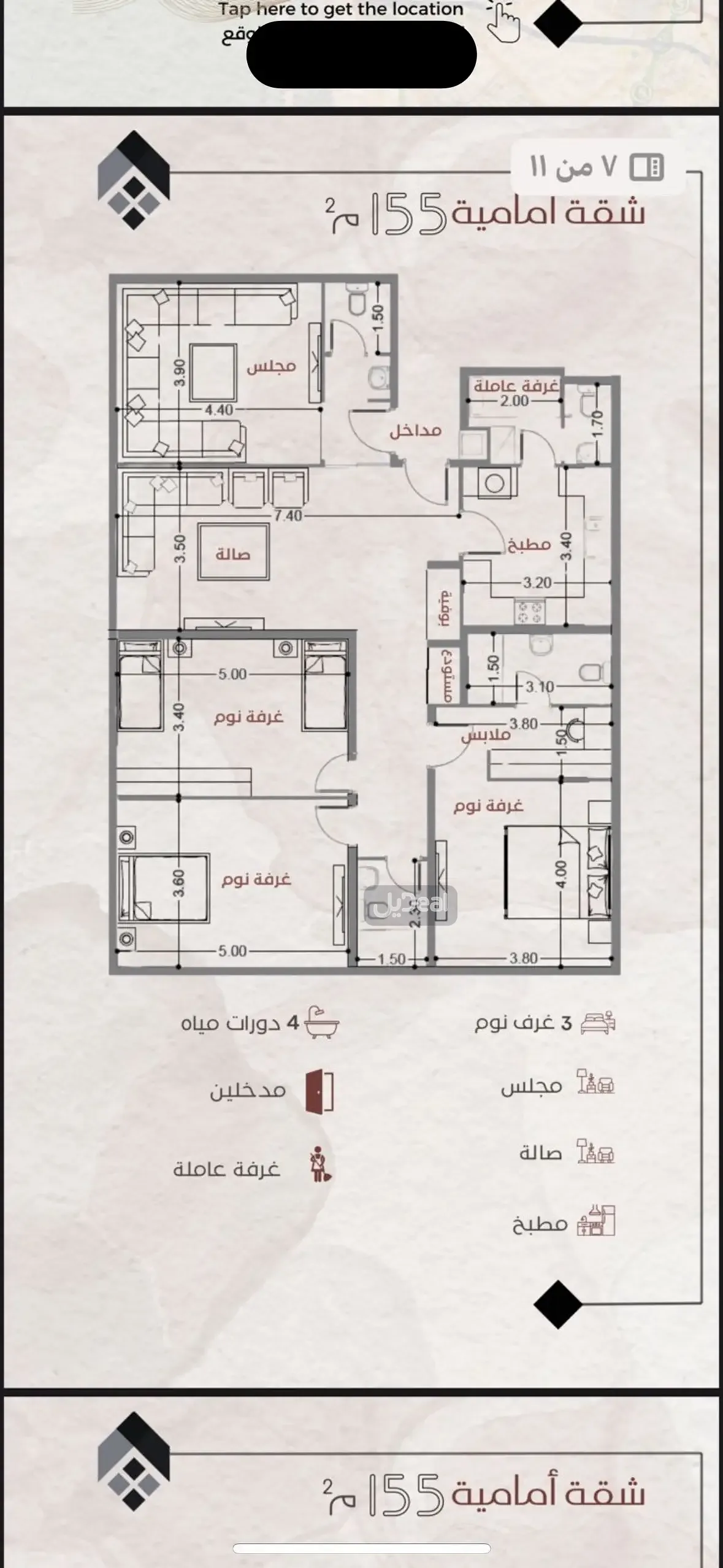 عدد الغرف 3