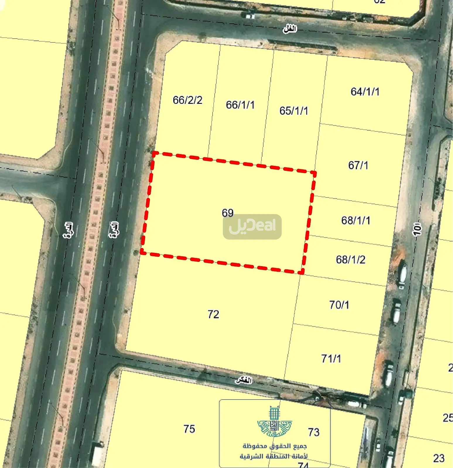 ✨ مواصفات الأرض: • رقم القطعة: 69 – بلك 6 • المخطط: ش خ 739 • المساحة: 2642.73 م² • الاستخدام: سكني – مثالية لبناء قصر فاخر • الواجهة: غربية • على شارع 40 متر (البوليفارد) • الأطوال: • شمالاً: قطعة 66 بطول 65 م • جنوباً: قطعة 72 بطول 65 م • شرقاً: قطع 67 و68 بطول 41.31 م • غرباً: شارع 40 م بطول 40 م