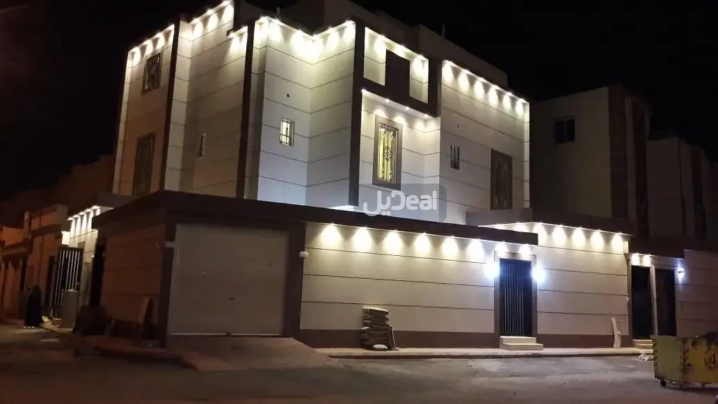 الدور الأرضي فيه: • مجلس رجال • مغاسل + دورة مياه • مقلط • صالة • مطبخ • مخزن خلف البيت • غرفة خادمة بدورة مياه • 3 غرف نوم، وحدة منها ماستر بحمام • عدد دورات المياه في الدور 3