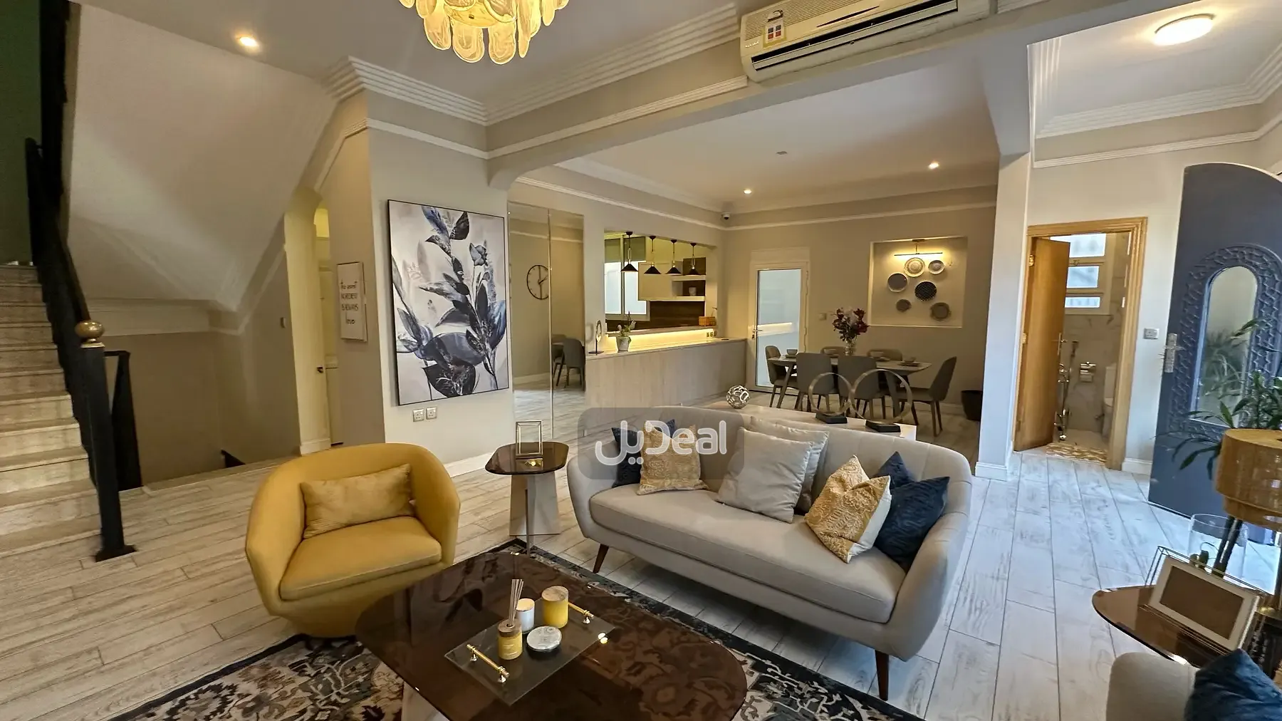 وغرفتين ومطبخ مفتوح بالاضافة الى بدروم كبير