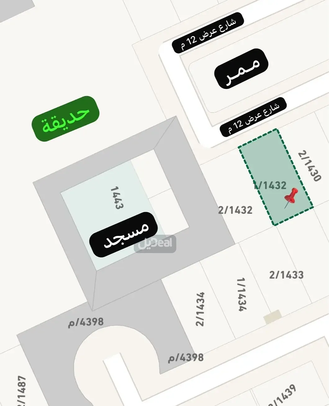 🔹 عرض الشارع: 12م (على ممر)