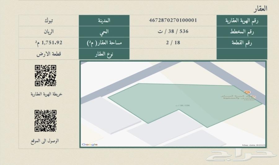وصف موقع العقار حسب الصك المدينة: تبوك