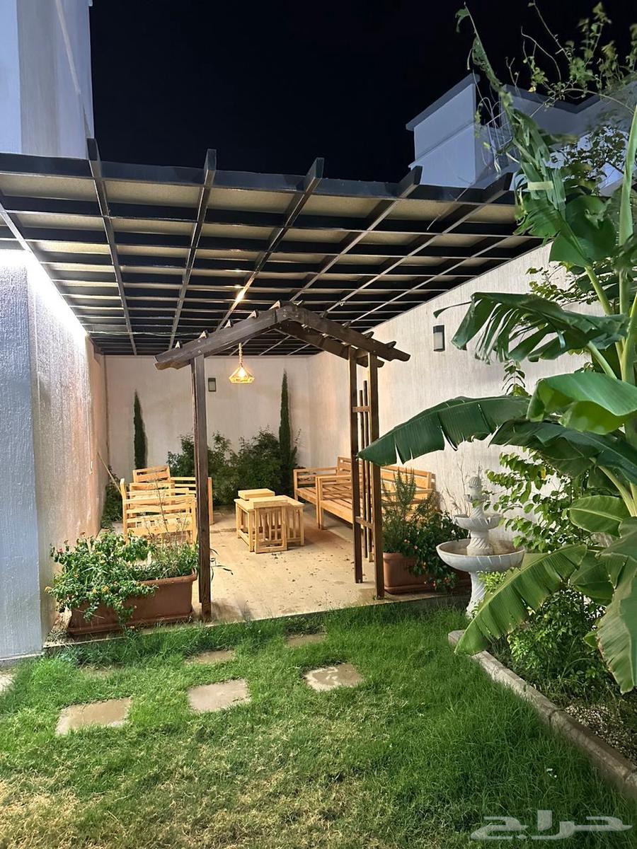 فله (الياسمين) بمدينة الورود للايجار السنوي مكونه من دورين وملحق 4 غرف - 5 دورات مياه - 2 مجلس - مطبخ مساحة الارض 450 م2 مساحة البناء الاجمالية 246 م2 حديثه لم تسكن الحوش به حديقة مزروعة انجيله طبيعية واشجار مثمره ونوافير وجلسات خارجية ومظلات الفله عليها ضمان الشركة المنفذه ولايوجد بها اي ملاحظات