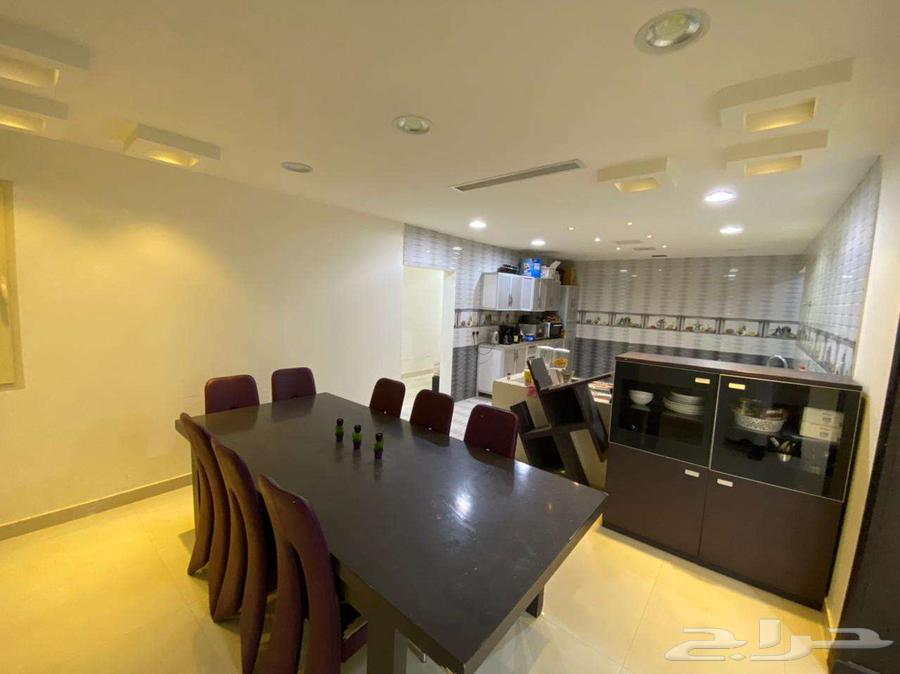 _ الدور الأرضي - مجلسين +دورات مياه + مقلط + صاله + مطبخين داخلي وخارجي - يوجد اصنصير لدور الثاني _ مسبح داخلي