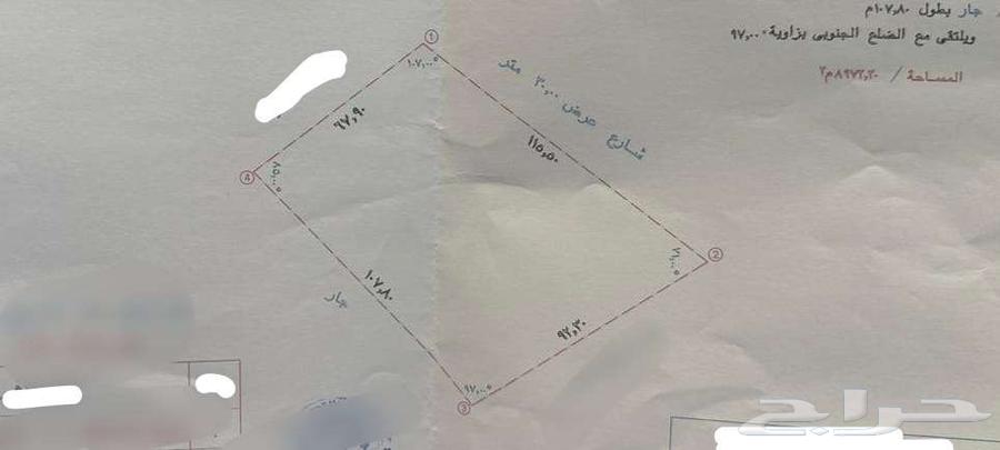 للبيع أرض بمخطط النخيل بعنيزة رقم العقار : 1980 مساحة الأرض ;8,972.2م تفاصيل العقار : تفتح على شارع عرض 30م بطول 115.50م شرقاً