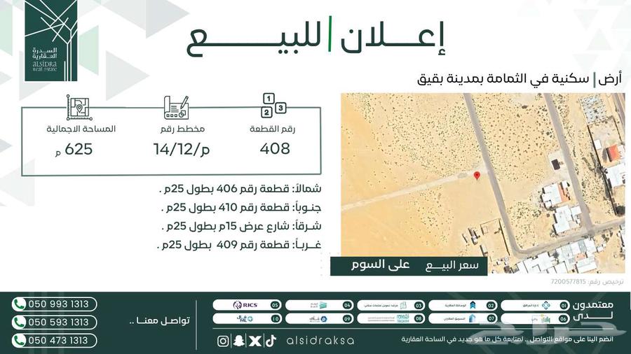 صاحب الترخيص : مؤسسة السدرة العقارية تاريخ انتهاء رخصة الإعلان : 2026-06-26 ----- نأمل مطابقة الموقع على الخريطة مع الموقع حسب الصك الضمانات و مدتها: لايوجد