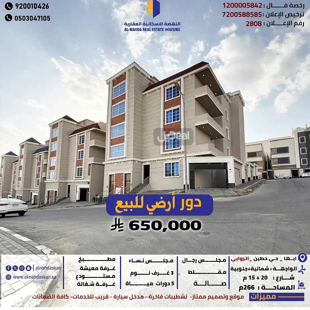 دور ارضي للبيع ابها حي الروابي