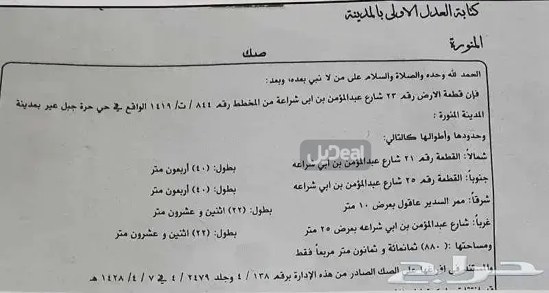 نأمل مطابقة الموقع على الخريطة مع الموقع حسب الصك: حي السكب , المدينه المنوره