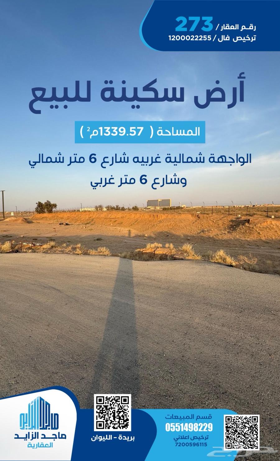 الواجهة شمالية غربيه شارع 6 متر شمالي وشارع 6 متر غربي الاطوال شمالي : 32.2م شرقي : 50.85 م جنوبي : 37.22 م غربي : 32.29 م الموقع : بريدة – الليوان