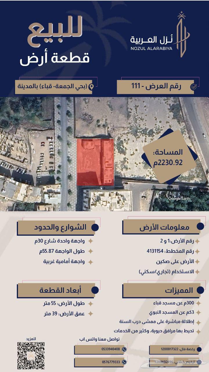 قريب المسجد قباء قريب المسجد النبوي الاجمالي مساحة الارض 2230 متر المطلوب 10000 ريال المتر