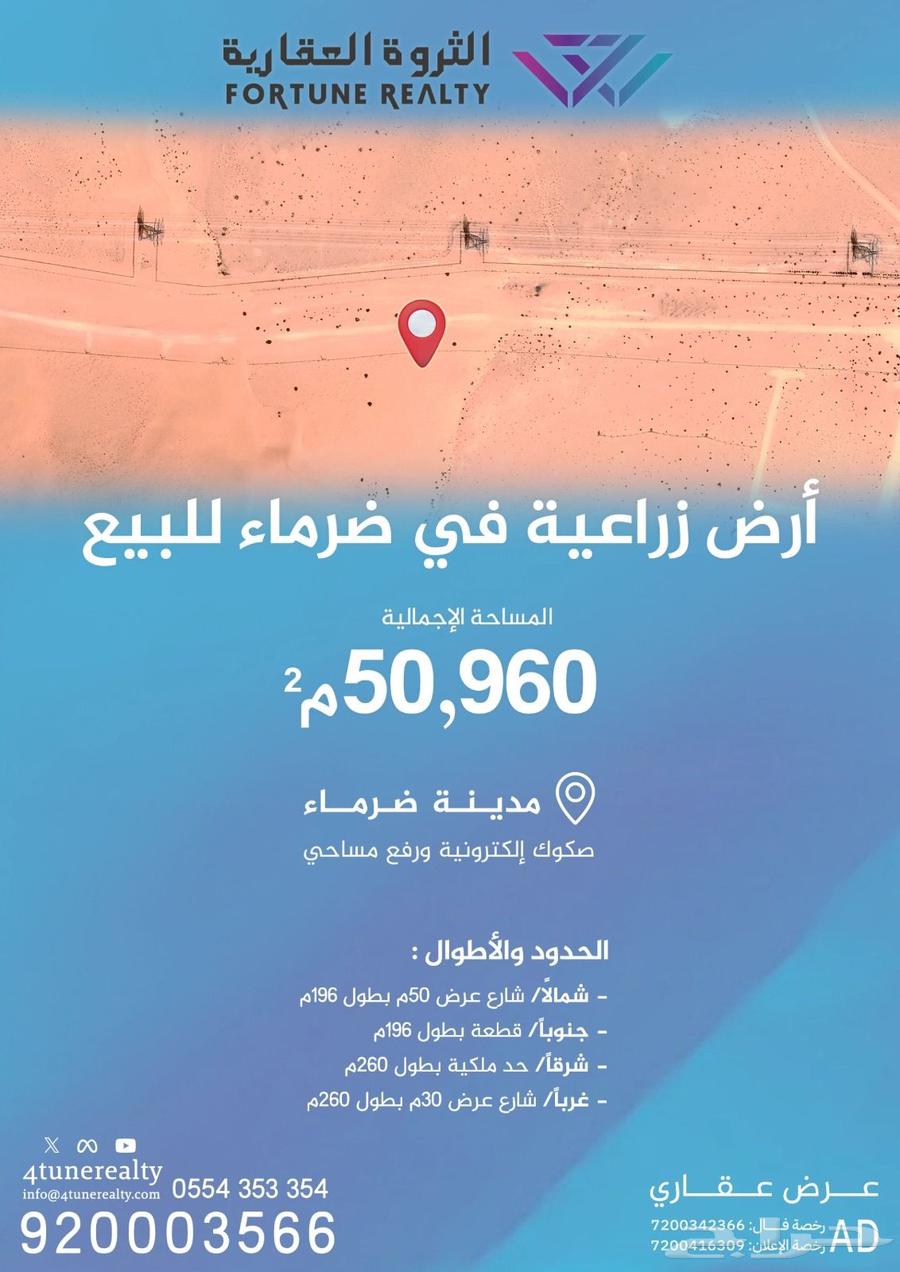 *للبيع ارض زراعية* في ضرماء صكوك إلكترونية ورفع مساحي
