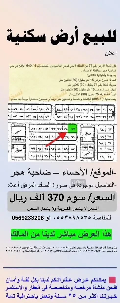 نأمل مطابقة الموقع على الخريطة مع الموقع حسب الصك: حي هجر التاسع , الاحساء اطلب عقارك لتحصل على مزيد من العروض العقارية ويتواصل معك العقاريون المختصون لخدمتك