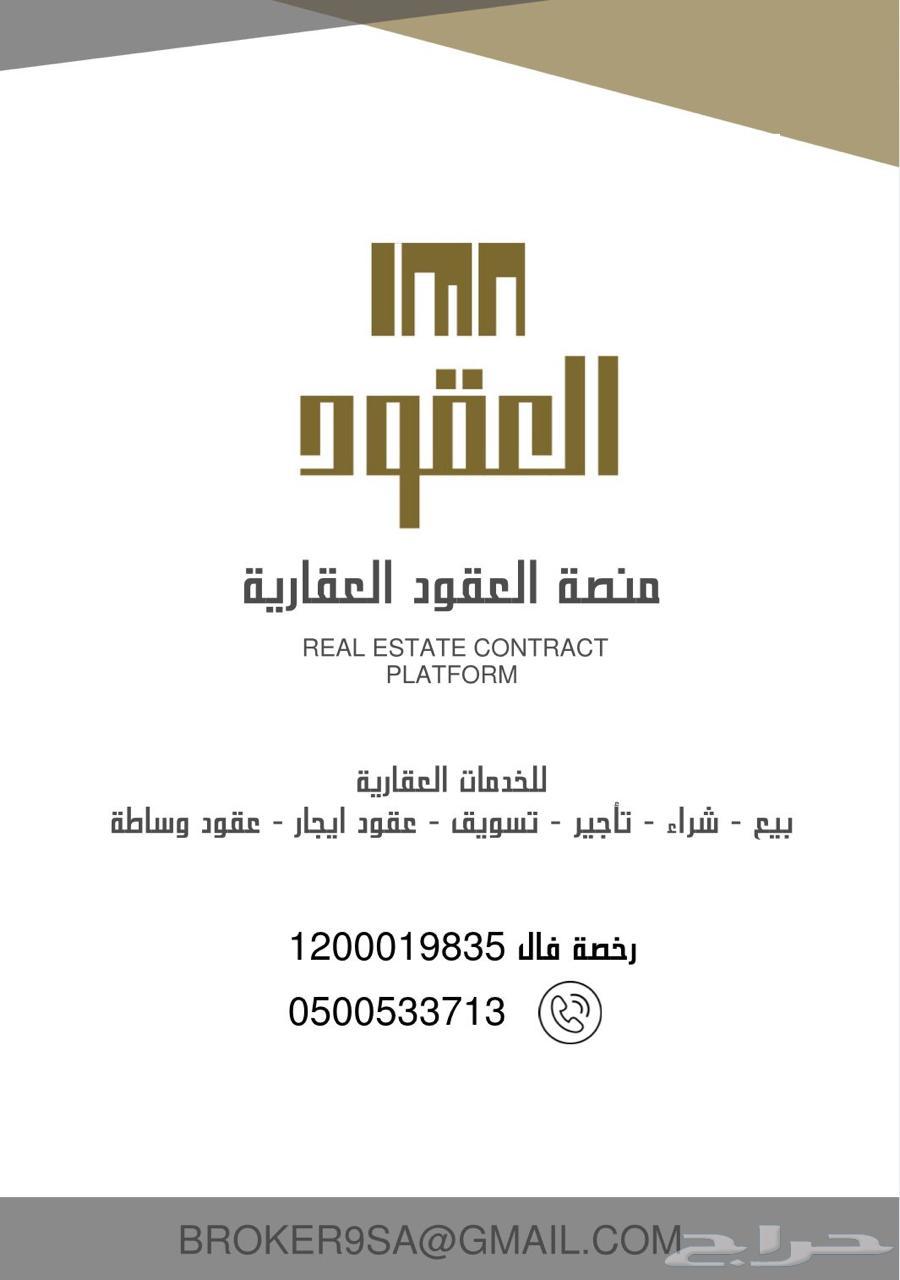 صاحب الترخيص : مؤسسة منصة العقود العقارية تاريخ انتهاء رخصة الإعلان : 2026-08-07 ----- نأمل مطابقة الموقع على الخريطة مع الموقع حسب الصك الضمانات و مدتها: لايوجد