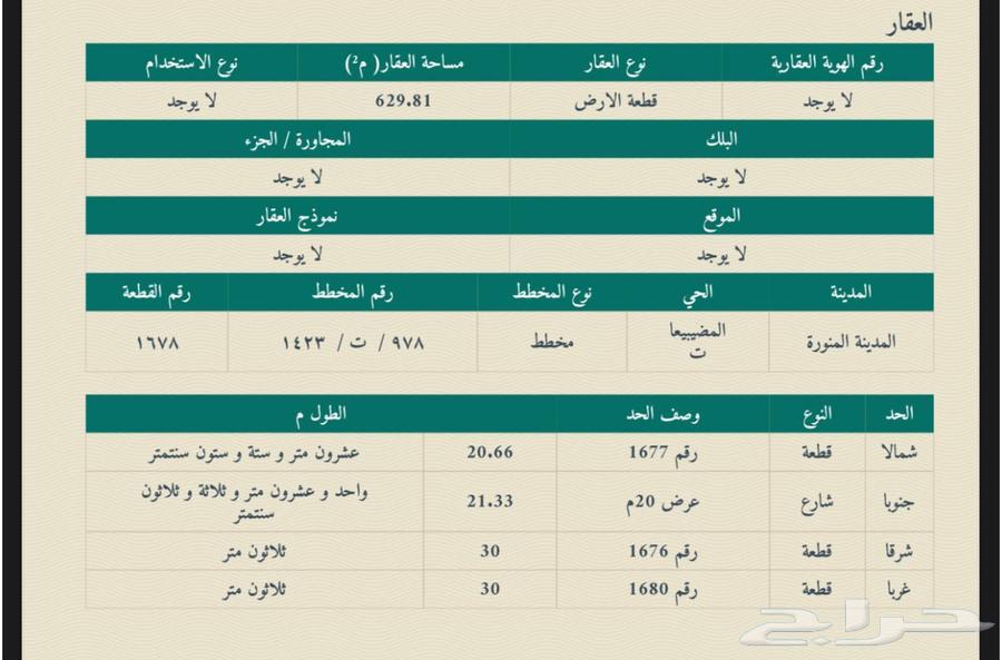 ارض لقطه بجوار العمران و الخدمات متساويه الاضلاع مساحتها 630 م شارع 20 رقمها 1678 موقعها جدا طيب بجوار 5 مساجد و اقرب مسجد يبعد حوالي 100 م جاهزه للبناء عليها فورا لقطه عقاريه من المالك مباشره بدون وسيط ( رقم الجوال يظهر عند الضغط على زر تواصل )