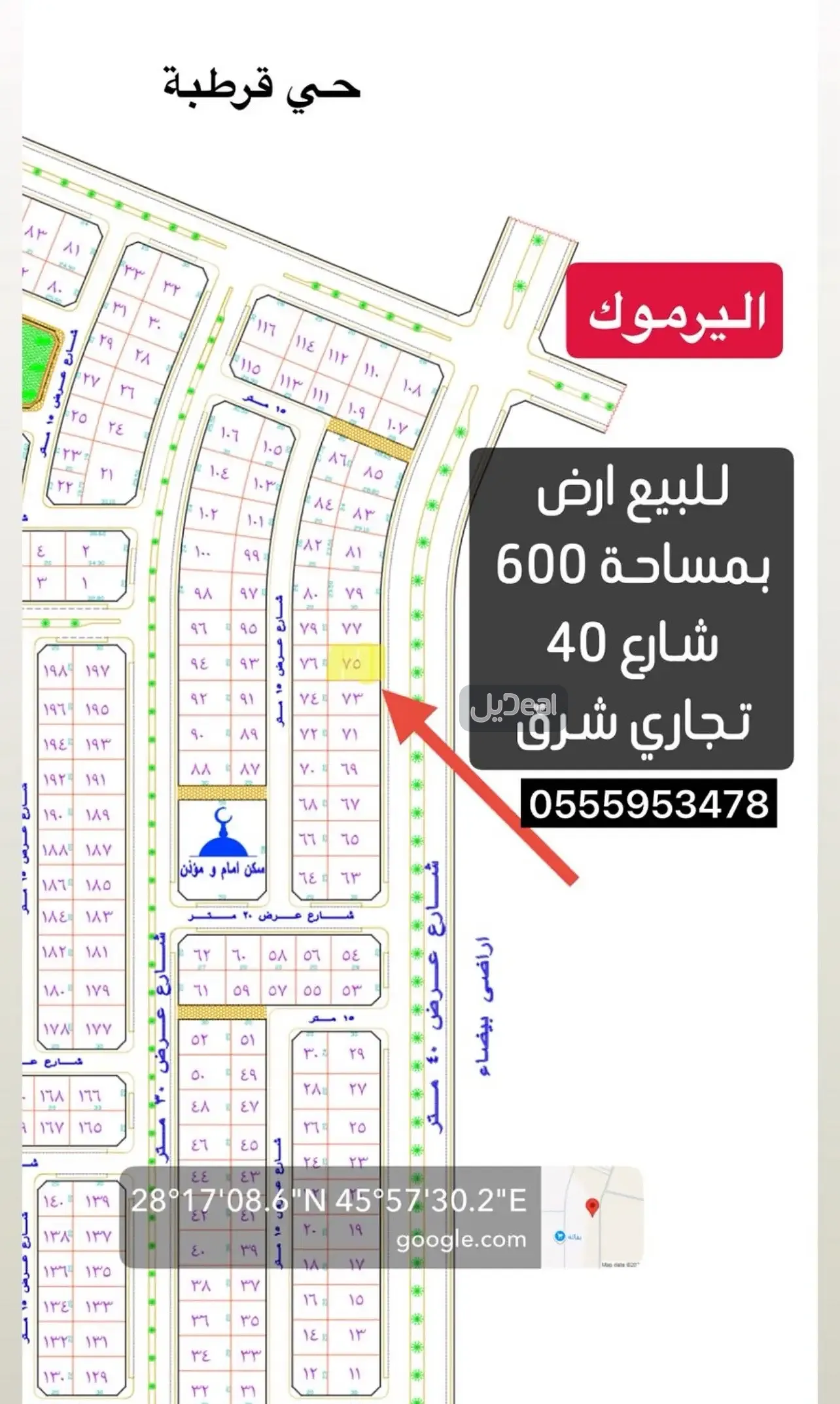 ارض تجاريه شارع 40 شرق الحزام الغربي في اليرموك بمساحة 600 متر مناسب للاستثمار الادخاري