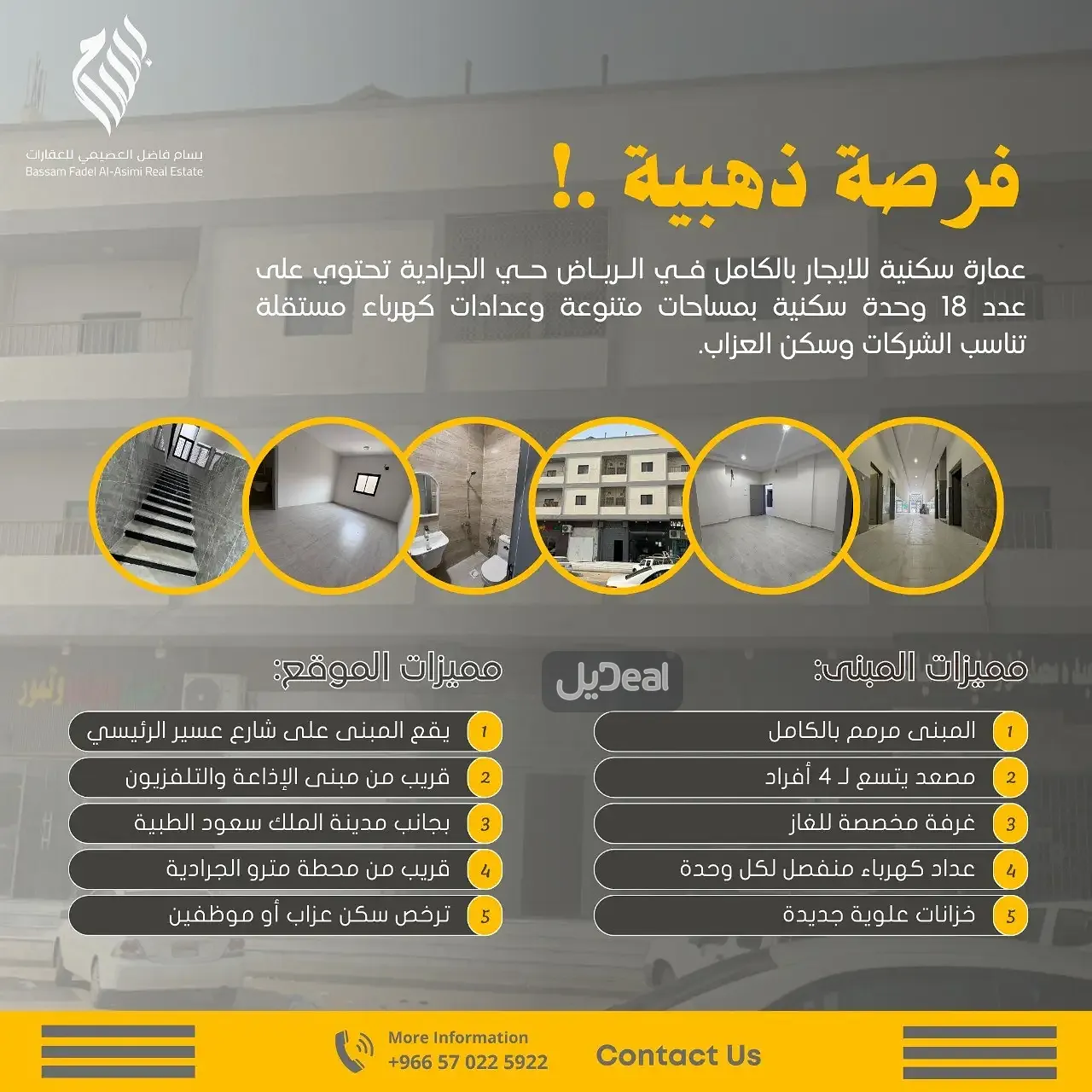 نوفر لك عمارة للإيجار بالكامل تصلح لعدة أنشطة: