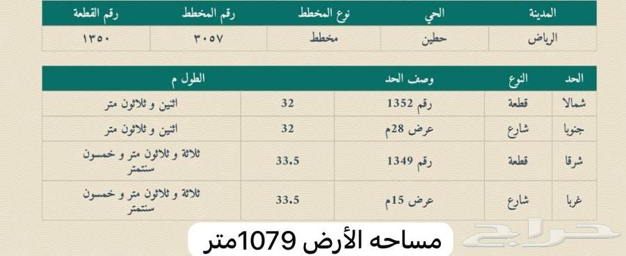 للبيع ارض شارعين بموقع مميز حي حطين المساحة 1079 م شارع 28 م جنوب شارع 15 م غرب