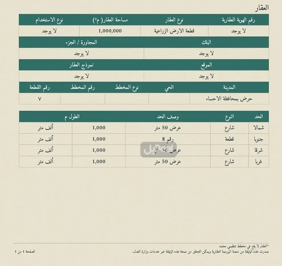 المساحة 1,000,000 م²