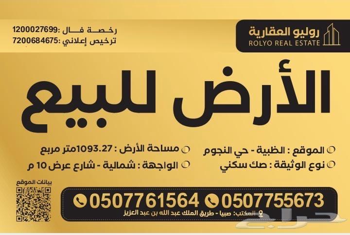 ارض سكنية بالظبية الموقع : الظبية - حي النجوم خلف محطة ساسكو نوع الوثيقة : سكني المساحة : 1093.27 متر مربع سعر المتر : 500 ريال