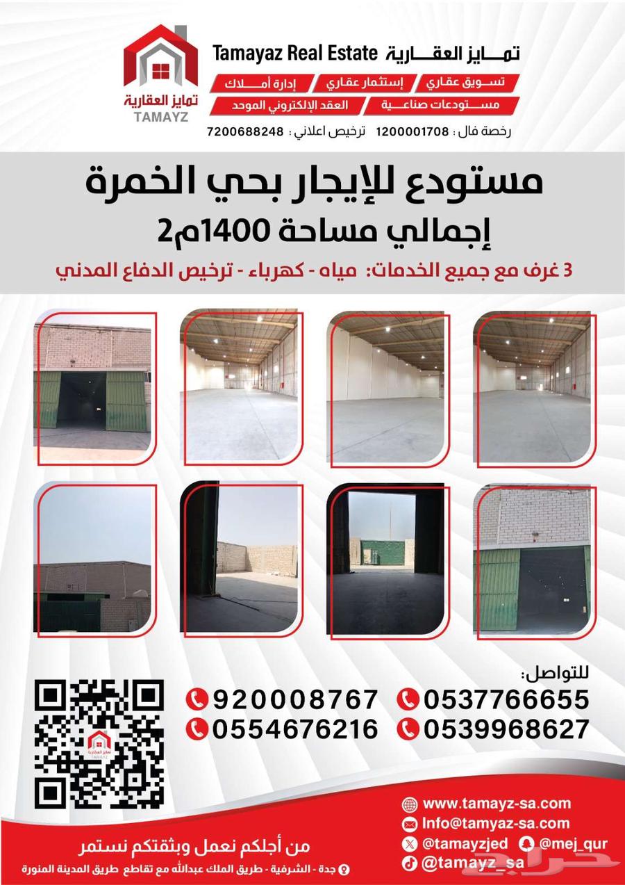 مستودع للايجار حي الخمرة بمساحة اجمالية / 1400م