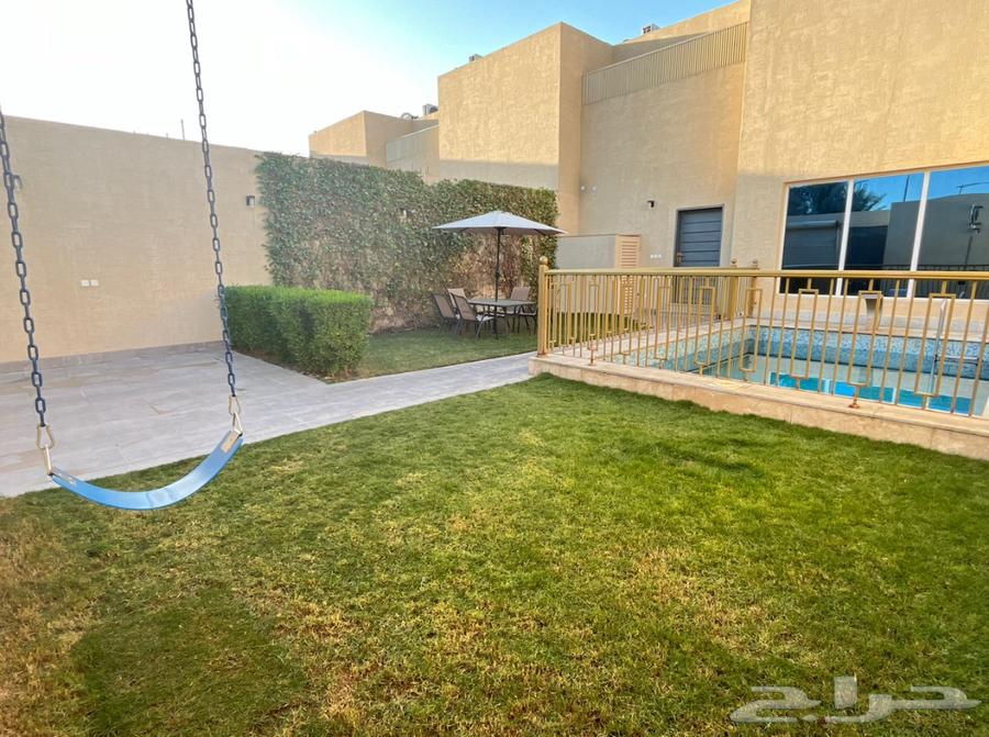 يتكون من دور ارضي يحتوي على مسبح وجلسة خارجية ومساحات خضراء ومطبخ وصالة طعام وحمام وصالة مجهزة بسماعات وليازر تتسع ل 25 شخص ودور علوي يحتوي على غرفتين نوم ) غرفة ماستر وغرفة بسريرين ) بحمام داخلي لكل غرفة وصالة صغيرة.