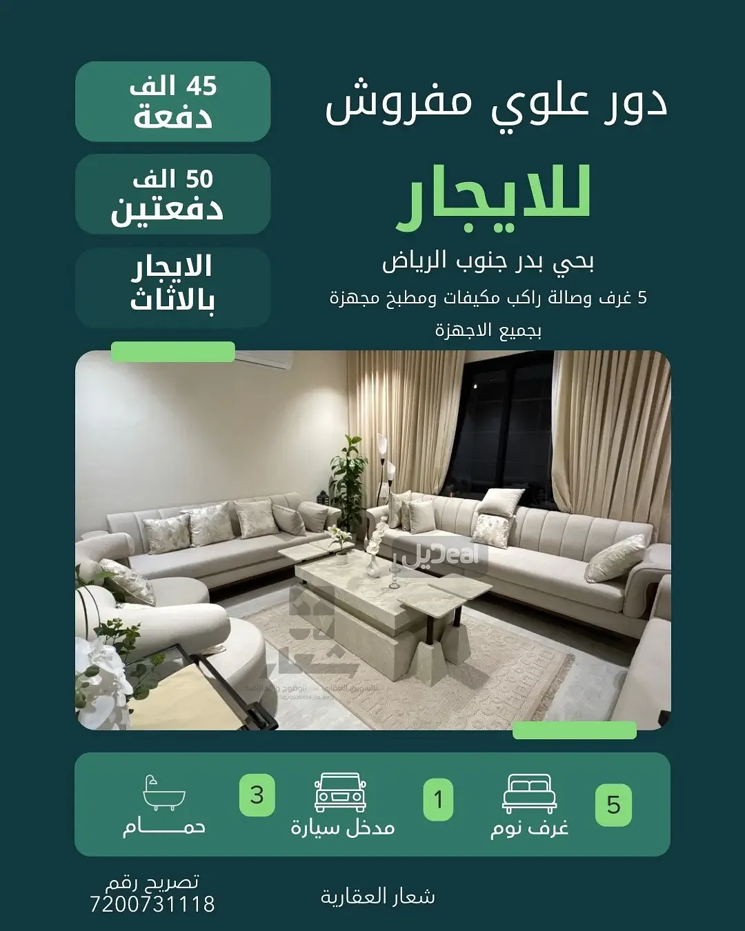 اطلب عقارك الآن  رقم ترخيص الإعلان  7200731118