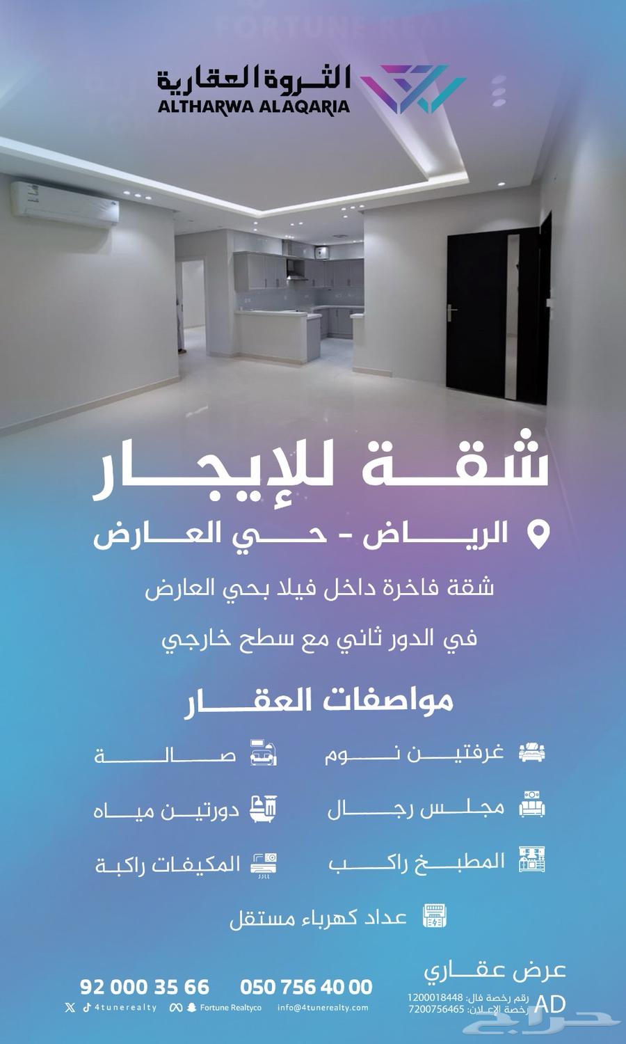 ⭐ للإيجار شقه فاخرة داخل فيلا بحي العارض في الدور ثاني مع سطح خارجي