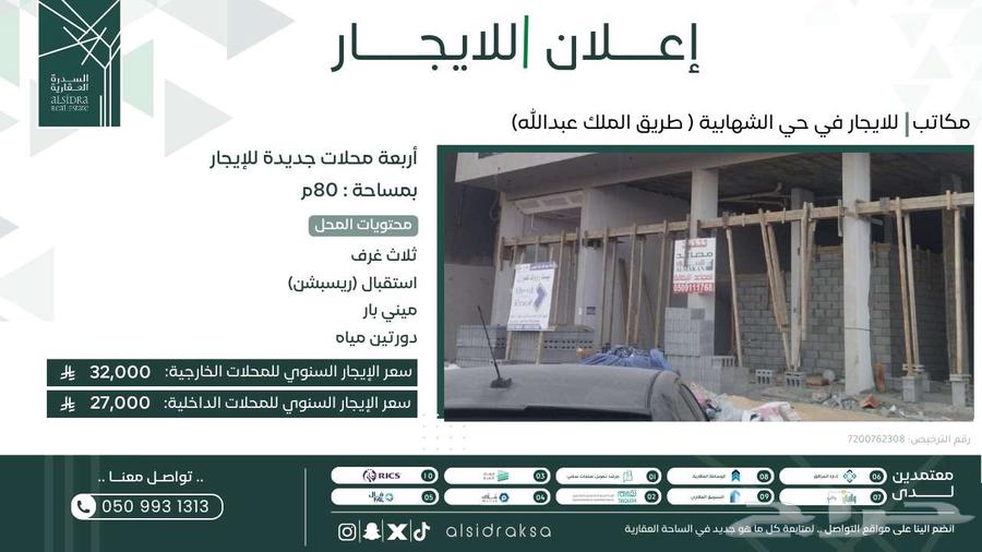 🔹 سعر الإيجار السنوي للمحلات الداخلية: سبعة وعشرون الف ( 27,000 )