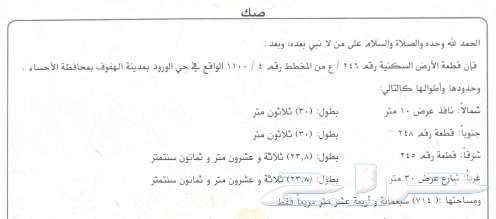 ارض للبيع في حي الورود الغربي رقم الارض 246 عين المساحة 714م شارع 30م غرب نافذ 10م شمال على السوم ----- نأمل مطابقة الموقع على الخريطة مع الموقع حسب الصك الضمانات و مدتها: لايوجد