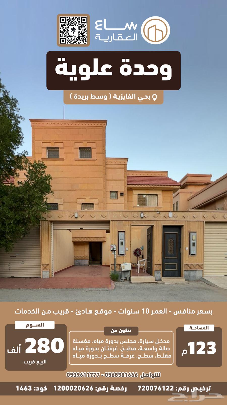 للبيع دور علوي بحي الفايزية عمره 10 سنوات موقع هادئ وقريب من الخدمات