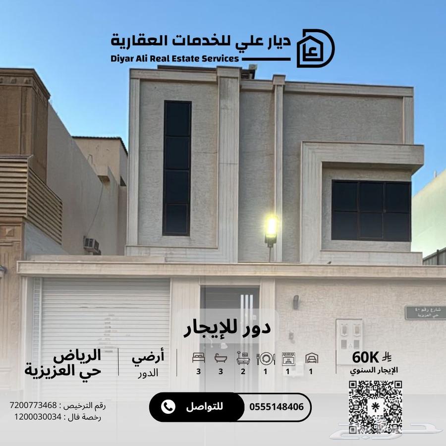 دور ارضي للايجار بحي العزيزية