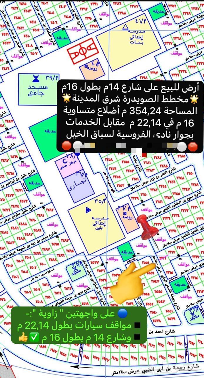 على شارع عرض 14 م بطول 16 م