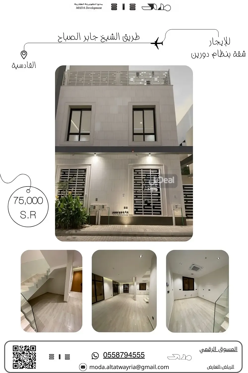 شقة دورين للإيجار – حي القادسية (مجمع ركايا)