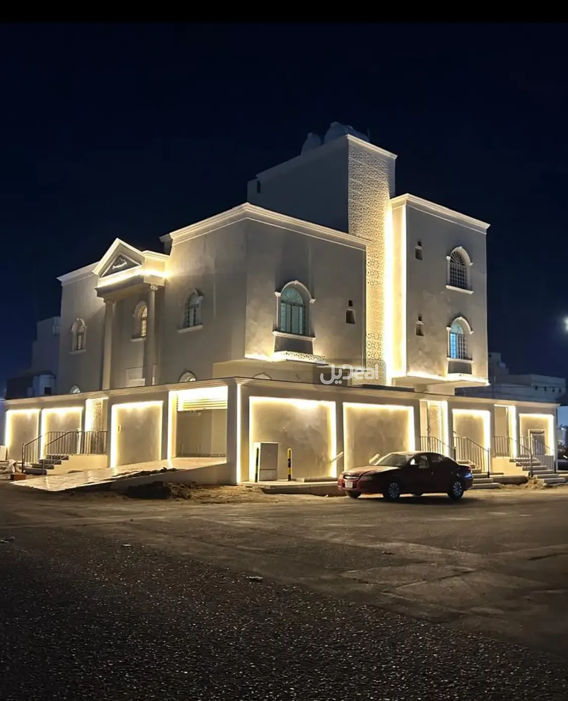 فيلا على شارعين دور ارضي مستقل بمدخلين ومدخل للسيارة والأدوار العليا ثلاث شقق بمدخل مستقل